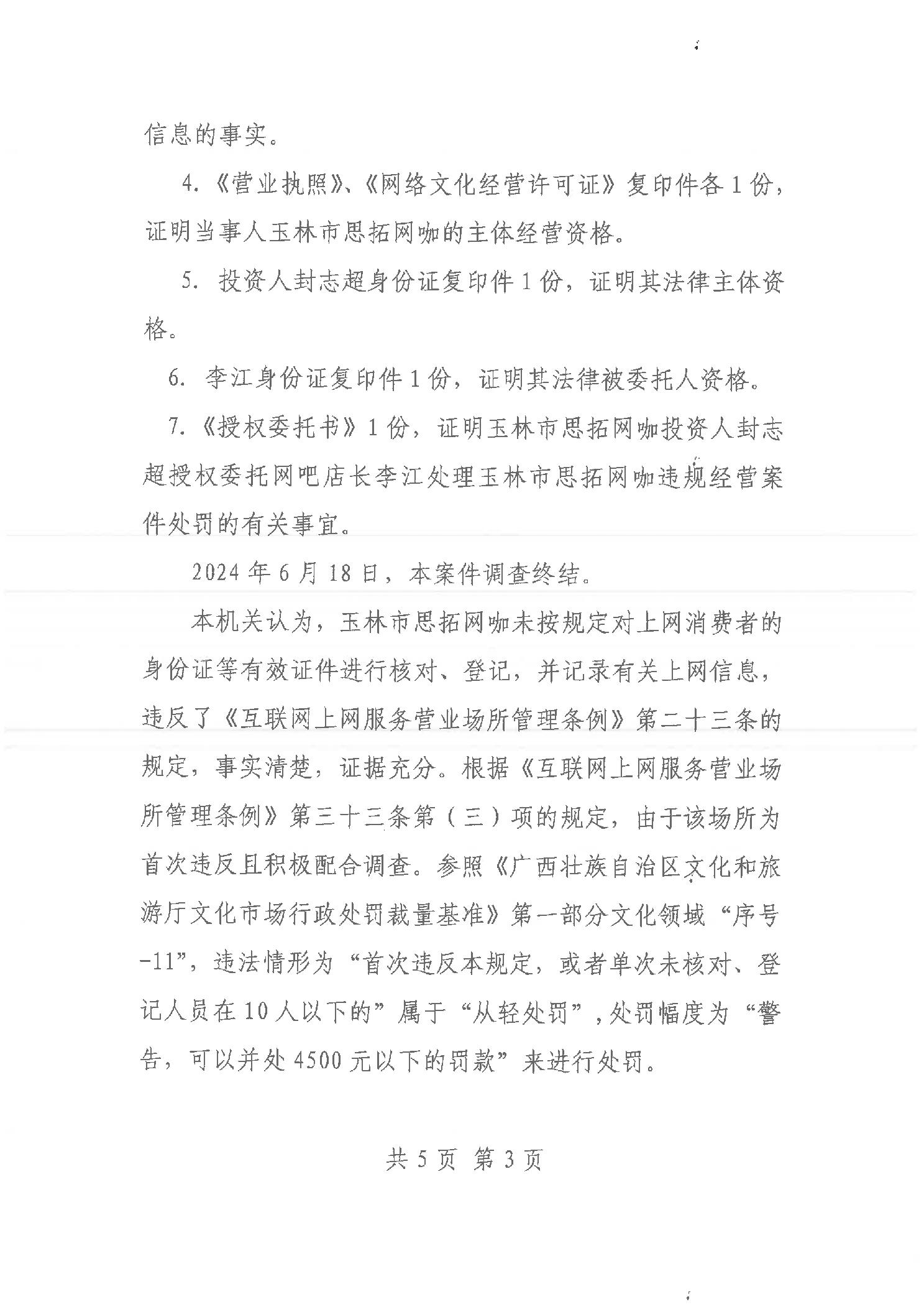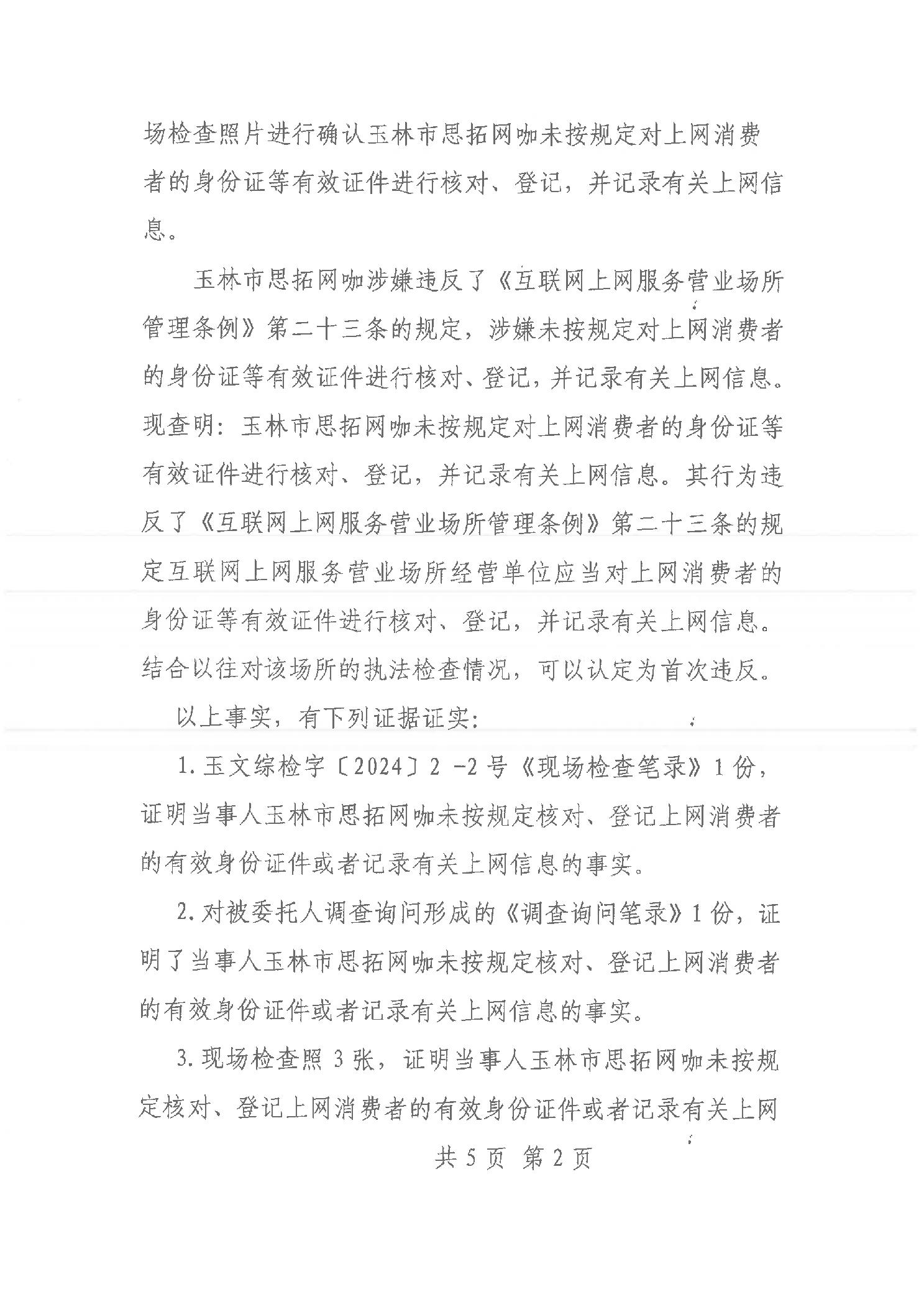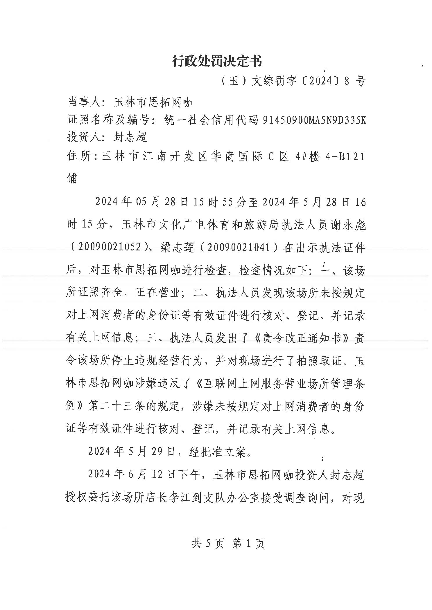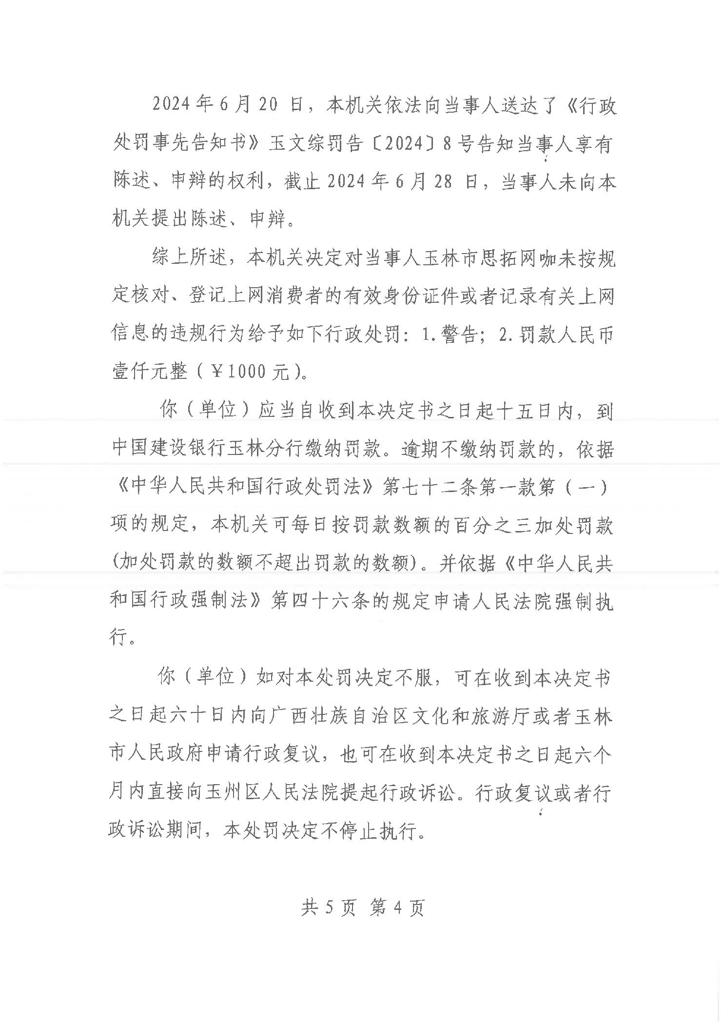 行政处罚决定书 (玉)文综罚字[2024]8号