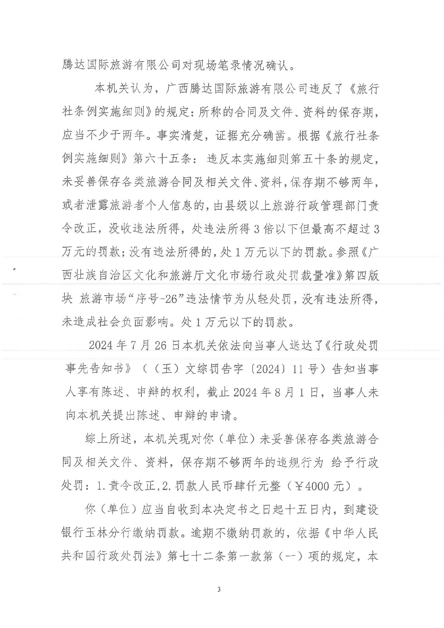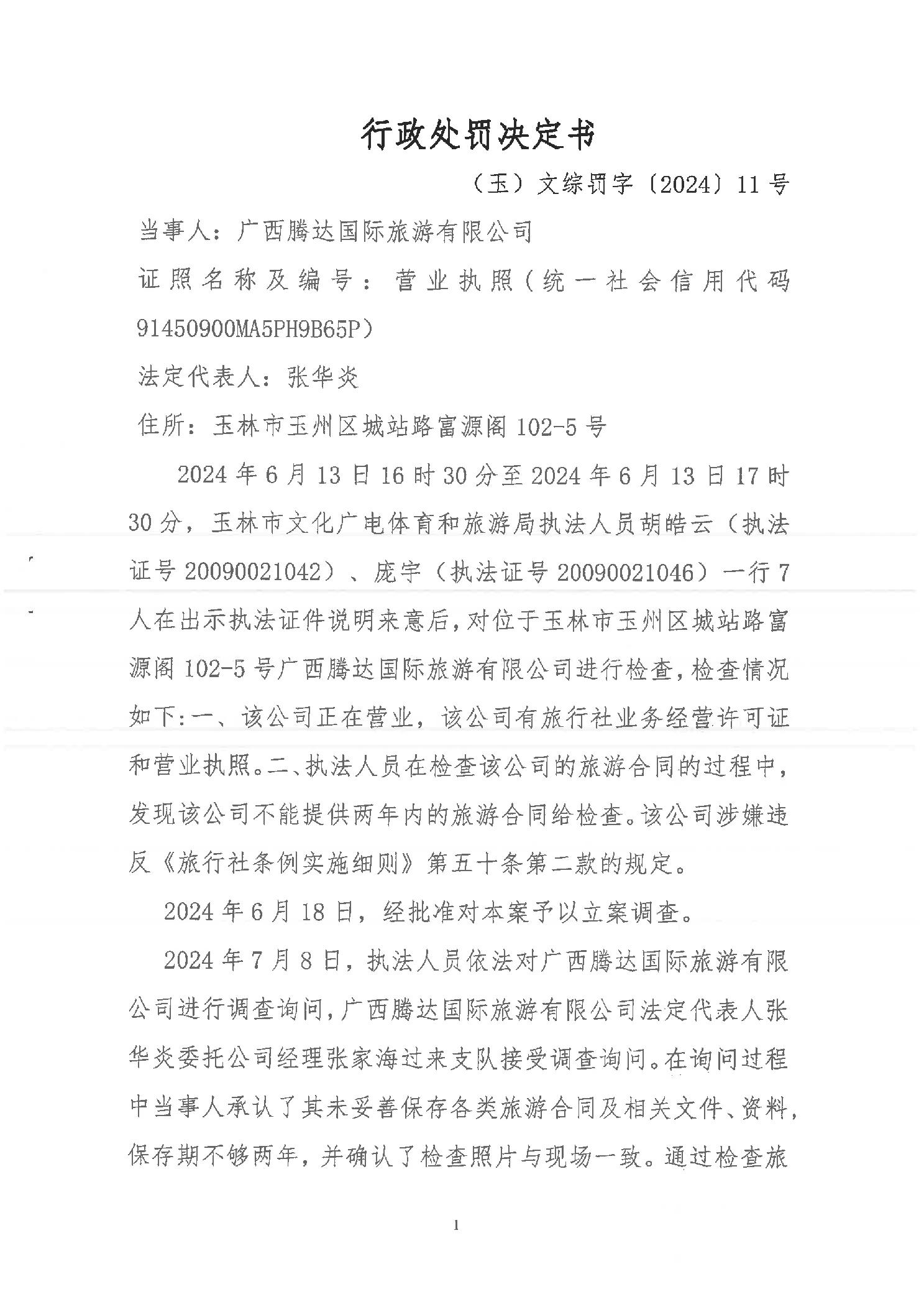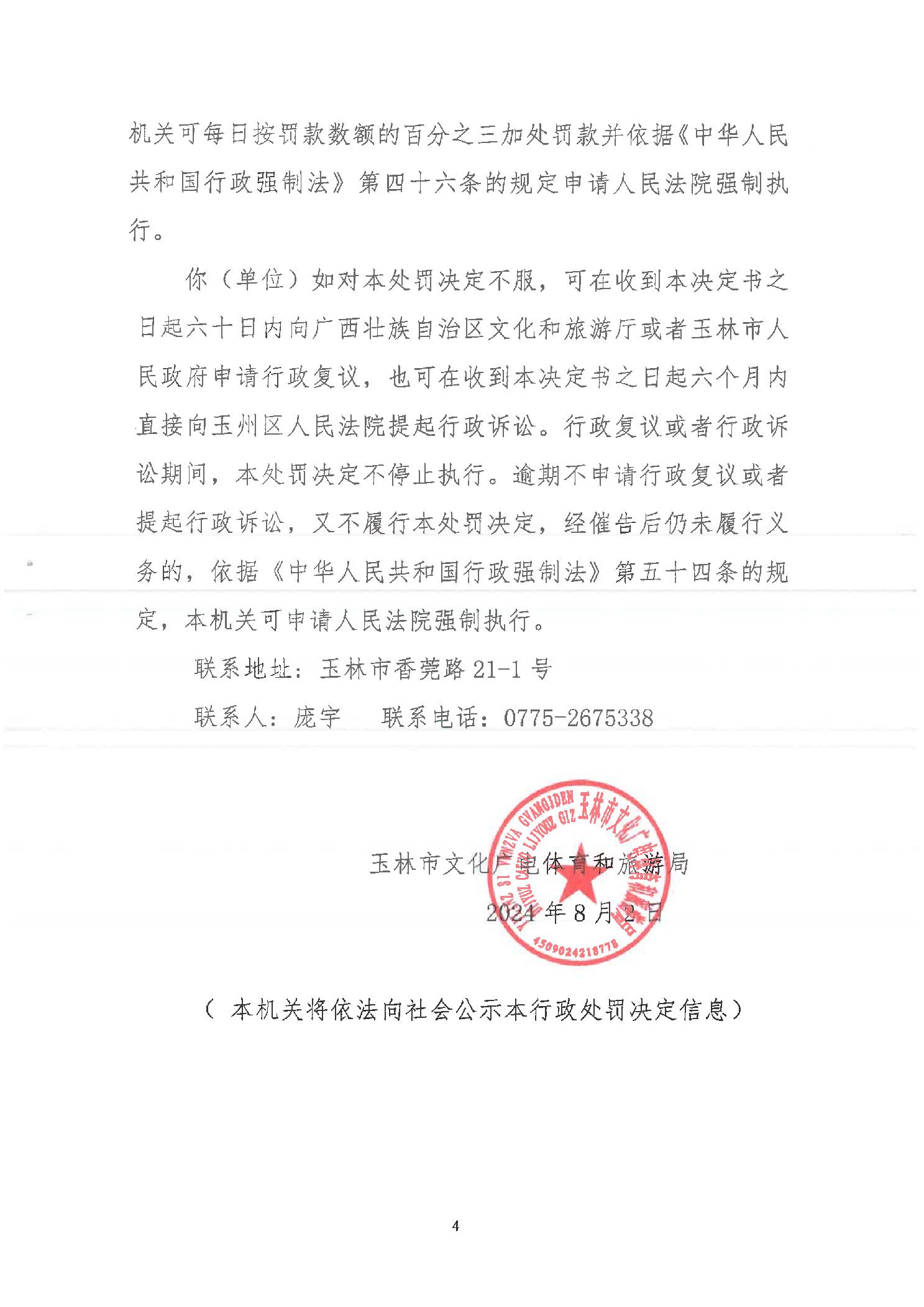 行政处罚决定书 (玉)文综罚字[2024]11号