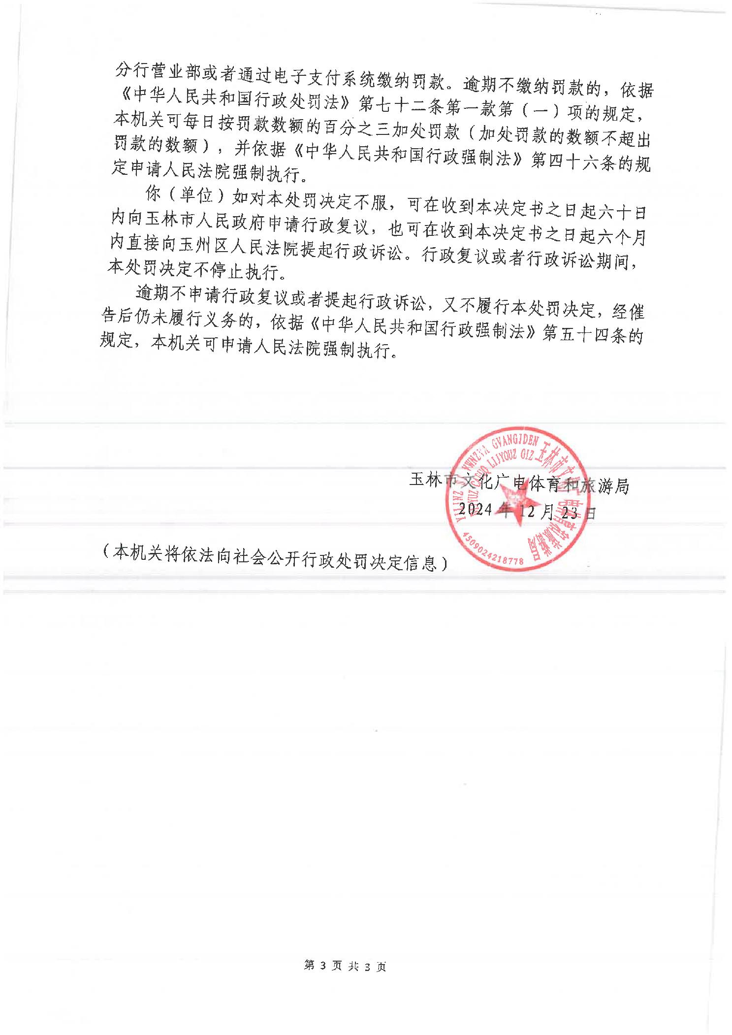 行政处罚决定书(玉)文综罚字〔2024〕18号