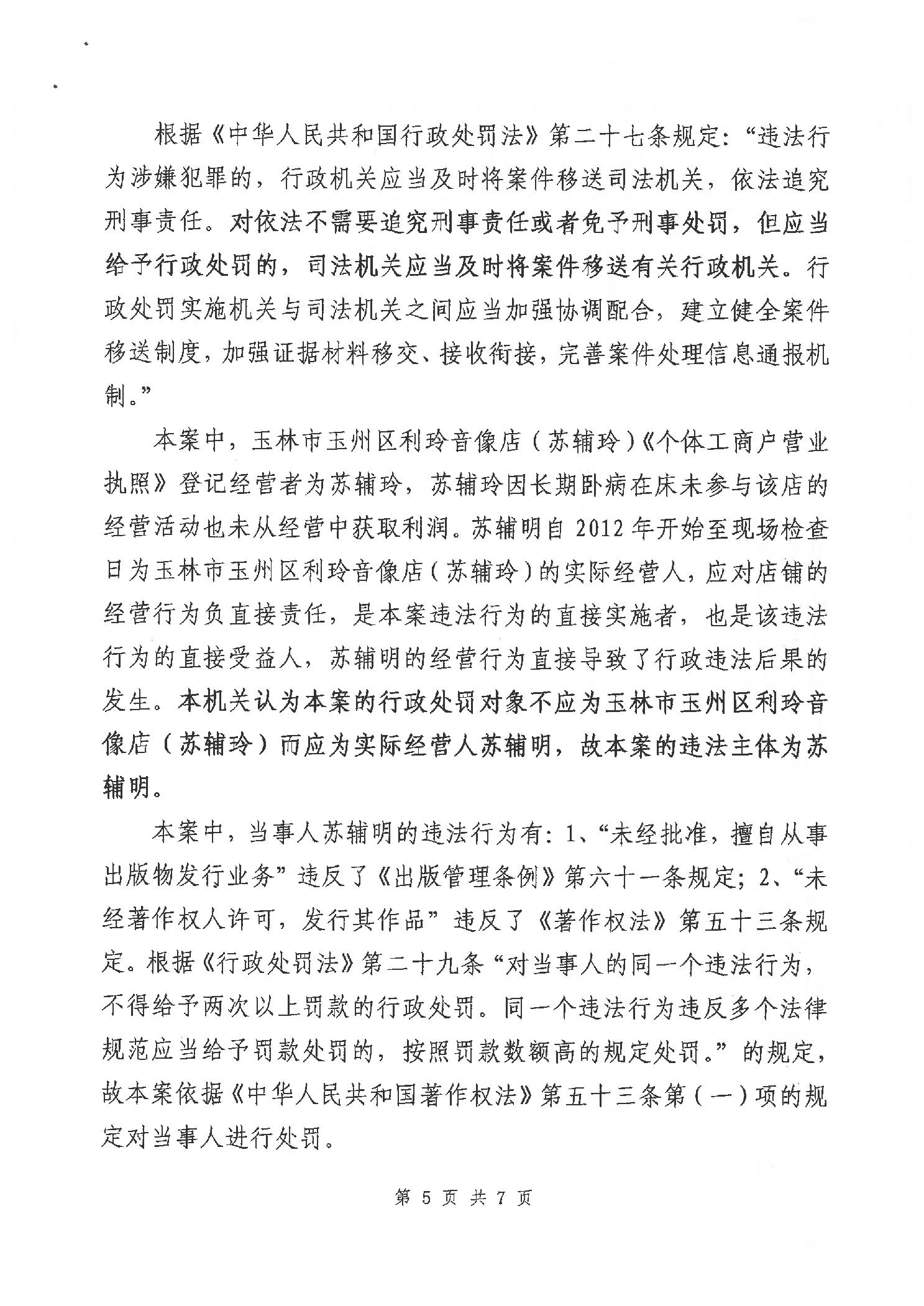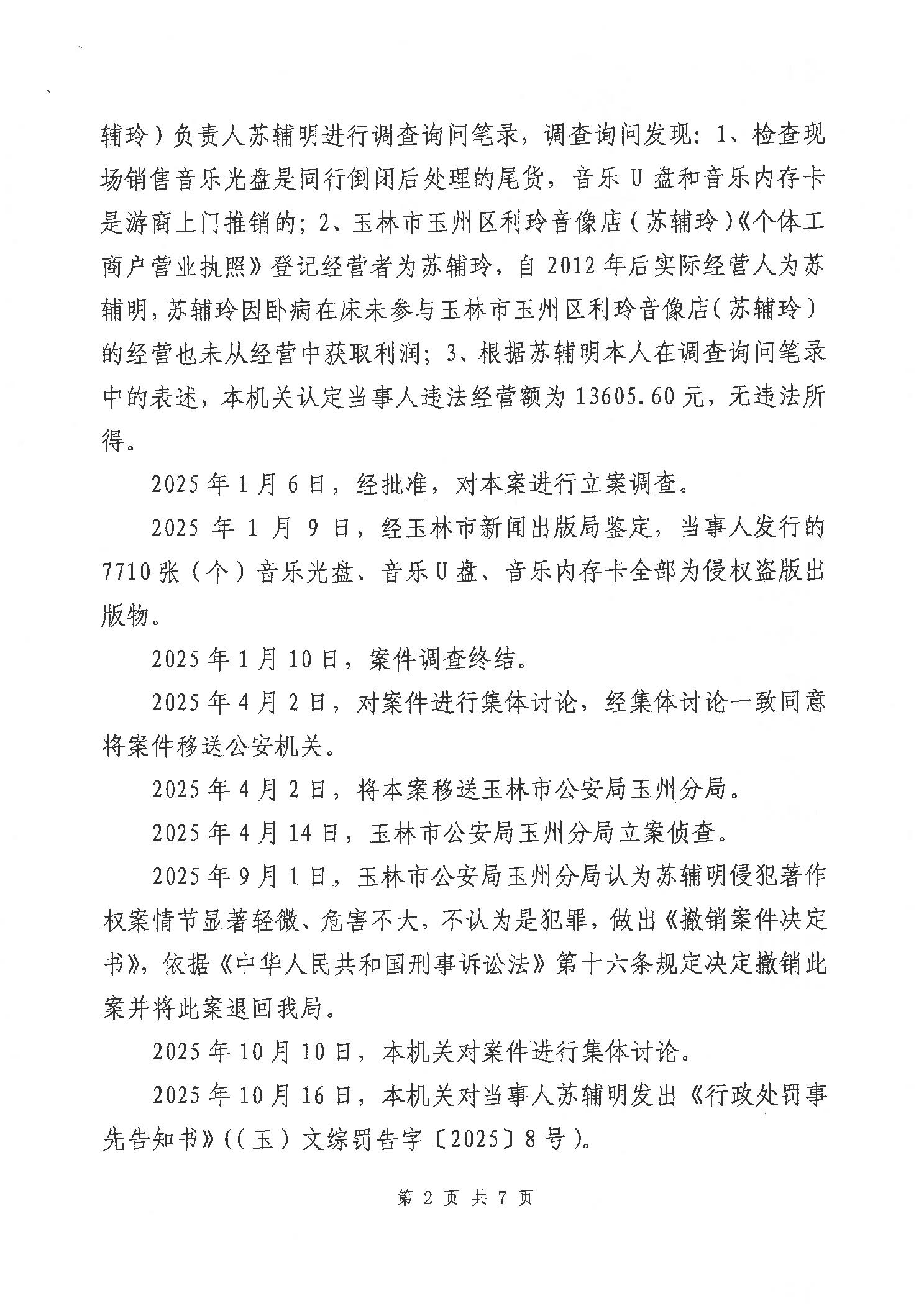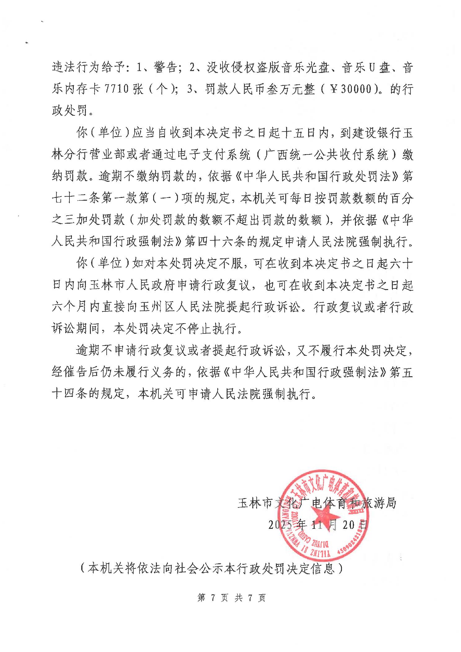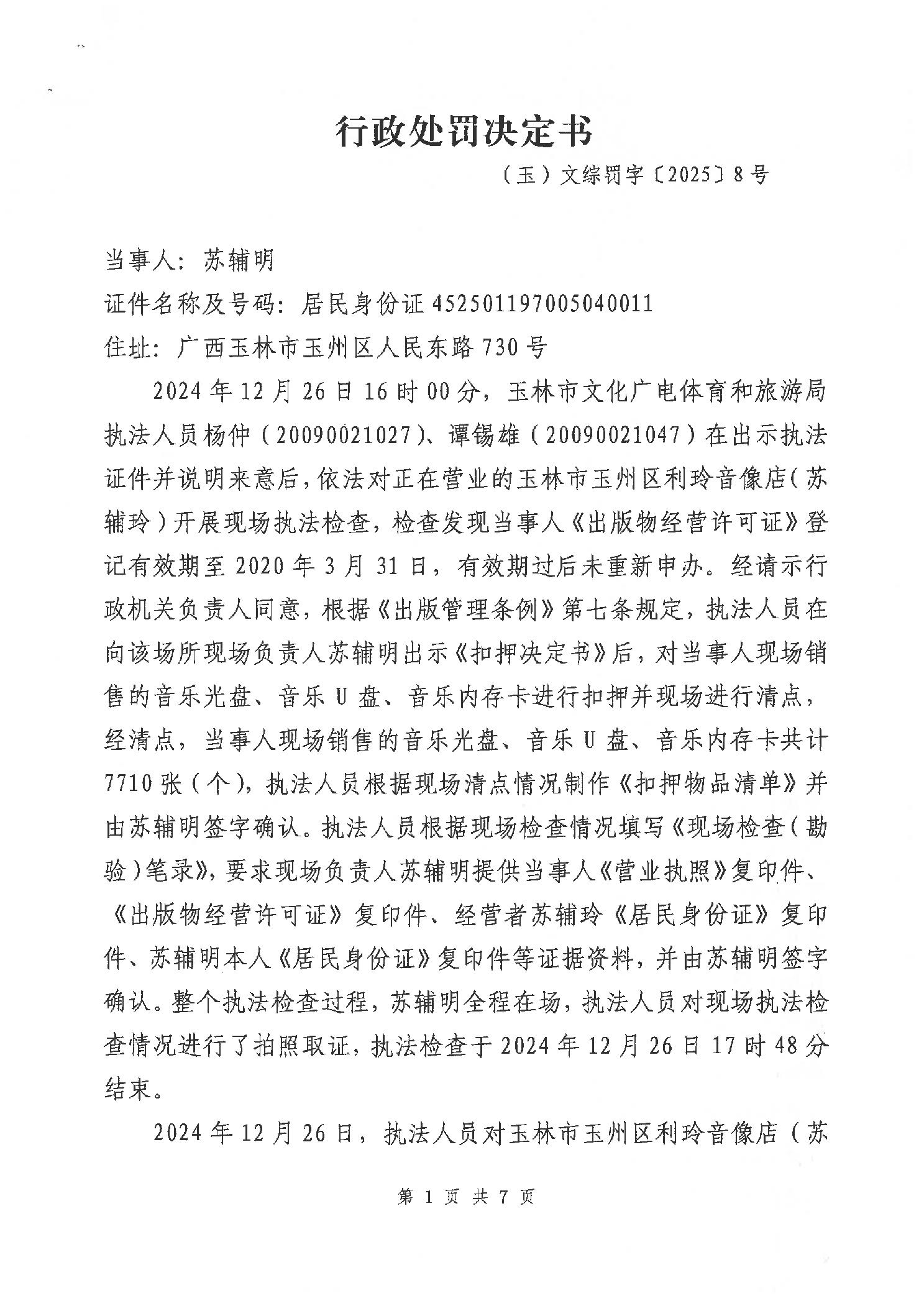 行政处罚决定书(玉)文综罚字〔2025〕8号