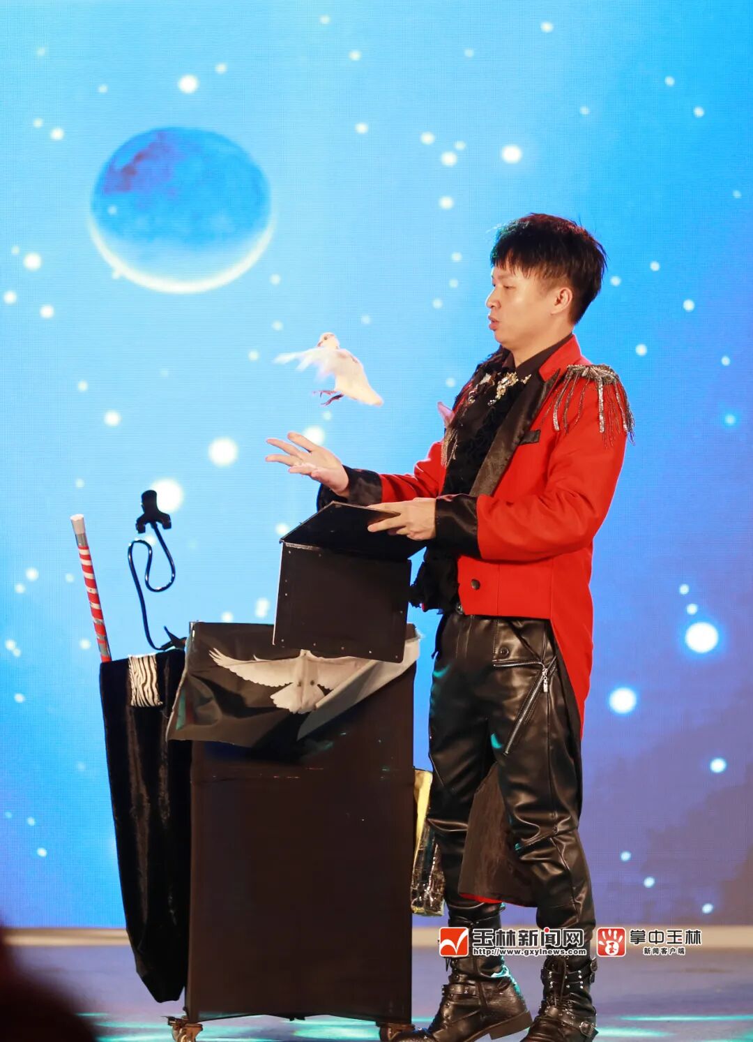 容县代表队的魔术《鸽子情缘》。