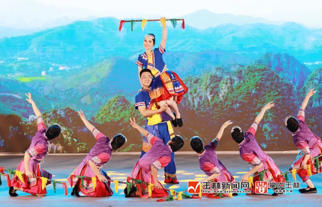 整场晚会围绕着“龙腾欢歌 鬱立潮头”主题旋律徐徐展开。其中,有歌颂家乡特色产业兴旺、助推玉林高质量发展的,如展示兴业县茶产业焕发新机的舞蹈《一茶业兴》,突出福绵区作为全球最大牛仔服装生产基地的舞蹈《牛仔很忙》,彰显容县作为“沙田柚之乡”独特韵味的舞蹈《柚韵》等。歌曲演唱《阿哥转来阿妹笑》、舞蹈《舞动美好 五彩玉东》、客家竹板歌《山乡蝶变》传达了万家团圆、安居乐业、歌舞升平的美好愿景;杖头木偶戏《唱山歌》、剪纸服装展示《兴业剪纸放光彩》展示了玉林非遗文化魅力;诗歌朗诵《诗词里的中国》、原创民谣乐队演唱《乡音难忘》表达了家国情怀、乡愁难忘。