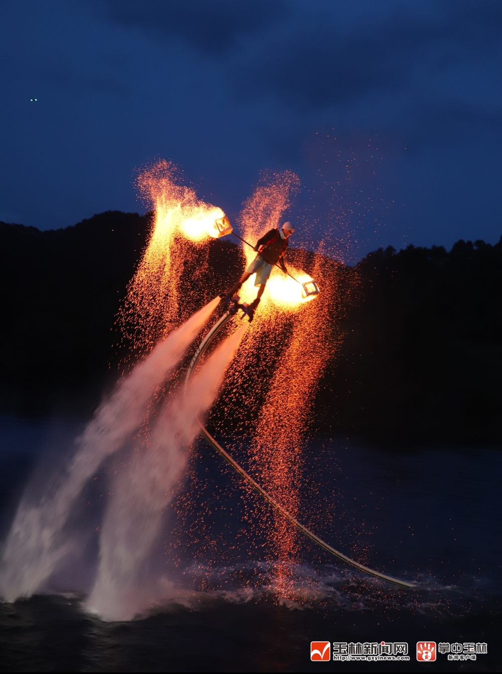 在水上表演环节,碧波荡漾的东龙水库成为了舞台。水上飞人、滑板等项目依次上演,精彩技艺让现场观众惊叹不已,喝彩声连连。而在东龙公园广场举行的2025年夏夜星空音乐会,将嘉年华活动推向了高潮。兴业籍“草根歌星”、网络红人谢有才为父老乡亲演唱了多首自己创作的歌曲,引发了全场大合唱。民间音乐爱好者和本土乐队也纷纷登台献艺,为观众带来了一场音乐盛宴。