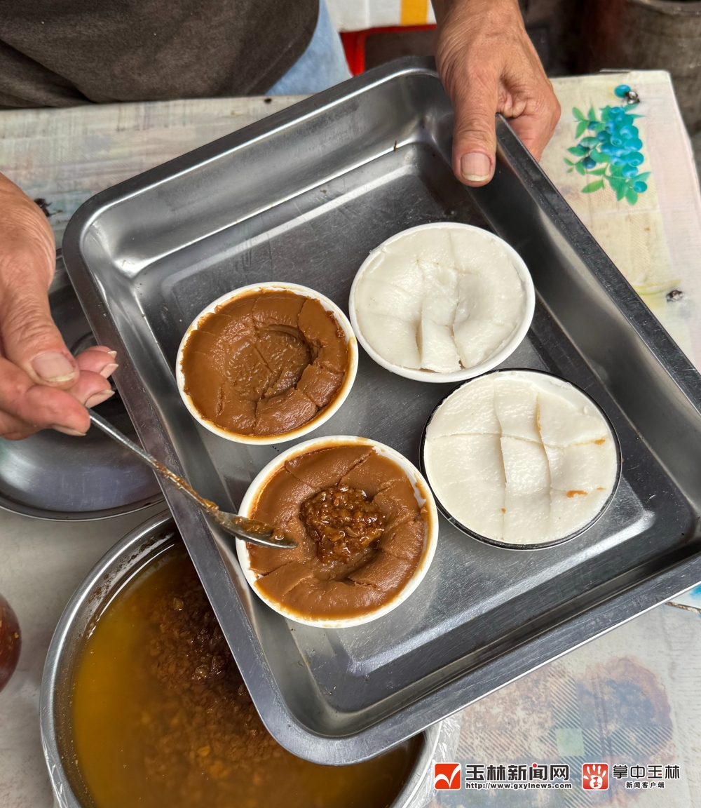 博白县城朝阳东路附近,一鸡窝籺摊点的老伯告诉记者,他售卖鸡窝籺已经有20多年了。“早上8点多出摊,卖到下午4点多收摊。”老伯介绍,鸡窝籺的制作工艺讲究而纯粹。选用优质大米,经过浸泡、磨浆、发酵、蒸制等多道工序,最终成就其Q弹爽滑、米香浓郁的口感。在“咸甜党”的争斗中,鸡窝籺可以完美地解决这一争论,棕色的鸡窝籺是红糖味的,“甜党”们最爱,而白色的鸡窝籺则是“咸党”们的胜利。老伯会在上面浇上蒜香油,再浇上熬制的酱汁,入嘴先是感受到酱汁的咸香,随后是籺本身柔韧嫩滑的质感与清甜的米香在口中交融,简单却令人回味无穷。