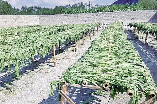 制作前,先把芥菜晾晒至菜叶蔫软。