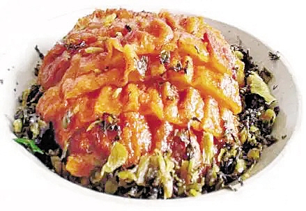 擦菜扣肉是陆川当地酒席与年关节日的必备佳肴。