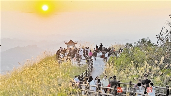 元旦假期,兴业县蒲塘镇北寮岭生态森林公园迎来客流高峰,景区内独特的落日晚霞与芦草丛林景观,吸引众多游客前来观光游览。
