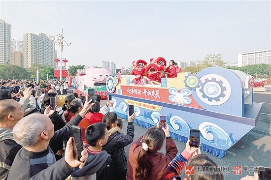 1月1日上午,大型花车巡游活动在市政广场正式启动。“向海图强”主题花车展现了玉林向海经济发展的雄心。