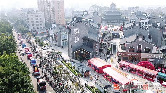花车巡游队伍经过万花楼文旅综合城。