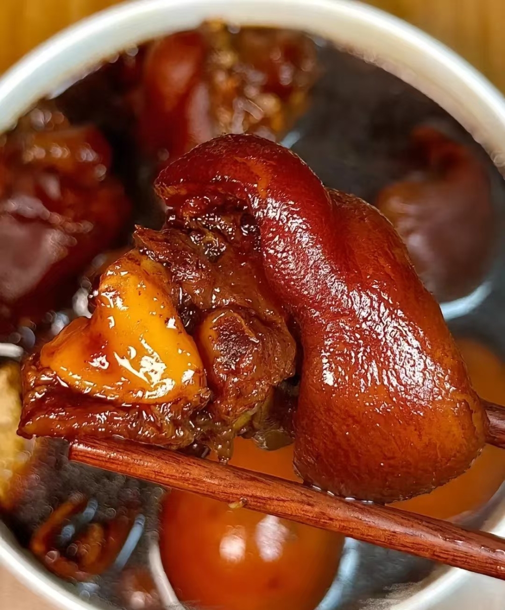 猪脚姜的灵魂在于那锅浓稠的甜醋。传统的制作方法中,甜醋需与去皮的老姜一同煮沸,待姜的辛辣完全融入醋中,再加入焯过水的猪脚和煮熟剥壳的鸡蛋。长时间的炖煮让猪脚软糯而不烂,鸡蛋入味而Q弹,姜块则褪去辛辣只留温润,甜醋的酸味被中和,转化为醇厚的甘香。