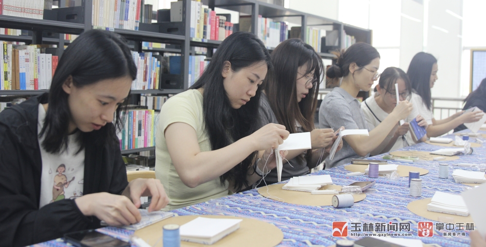 在阅读感想分享环节,市图书馆副馆长覃祖敏献唱了3首经典壮族歌曲,悠扬婉转的旋律饱含浓郁的民族风情。在手作体验区,中国人民银行玉林市分行员工热情高涨,在大山文化工作室老师的指导下,精心勾勒带有少数民族纹饰的手作书,一笔一画尽显匠心;在香囊手作工坊,大家细致甄选香囊袋、精准搭配特色药粉、亲手缝制专属香囊,在指尖劳作中感受传统民俗手作的乐趣,深刻体悟民族文化之美。
