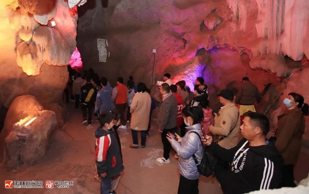 众多游客进洞参观游览。