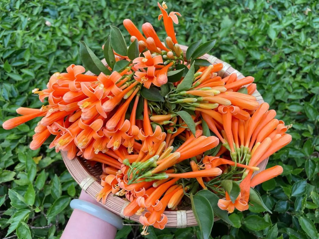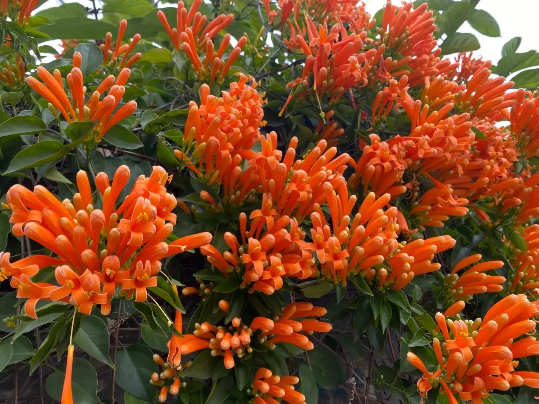 ▲喇叭形橙红色的花朵,形似鞭炮,热闹喜庆,还有富贵吉祥、红红火火、温暖美好的寓意。