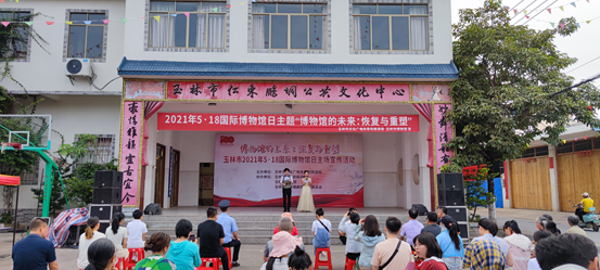 今年5月18日是第45个国际博物馆日,5月18日当天,由玉林市文化广电体育和旅游局主办,玉州区文化体育和旅游局、玉林市博物馆、玉州区鹏垌村委会协办的“玉林市2021年5·18国际博物馆日主场宣传活动”在玉林市玉州区仁东镇鹏垌村举行。宣传活动现场,村民们有的凝神静气聆听工作人员讲解文物展板、有的争先恐后索要文物资料、有的如痴如醉感受文艺表演,宣传现场气氛热烈,一派祥和。此次活动联合公安、玉州区等部门,通过向群众发放文物保护法律法规资料、防拐防骗小贴士、开展文艺表演活动、解答群众现场提问等形式,向群众广泛宣传了有关文物常识,宣传了党和政府关于文物保护、防拐防骗的法律法规,鼓励引导大家遵纪守法,关注文物、保护文物、爱护文物。